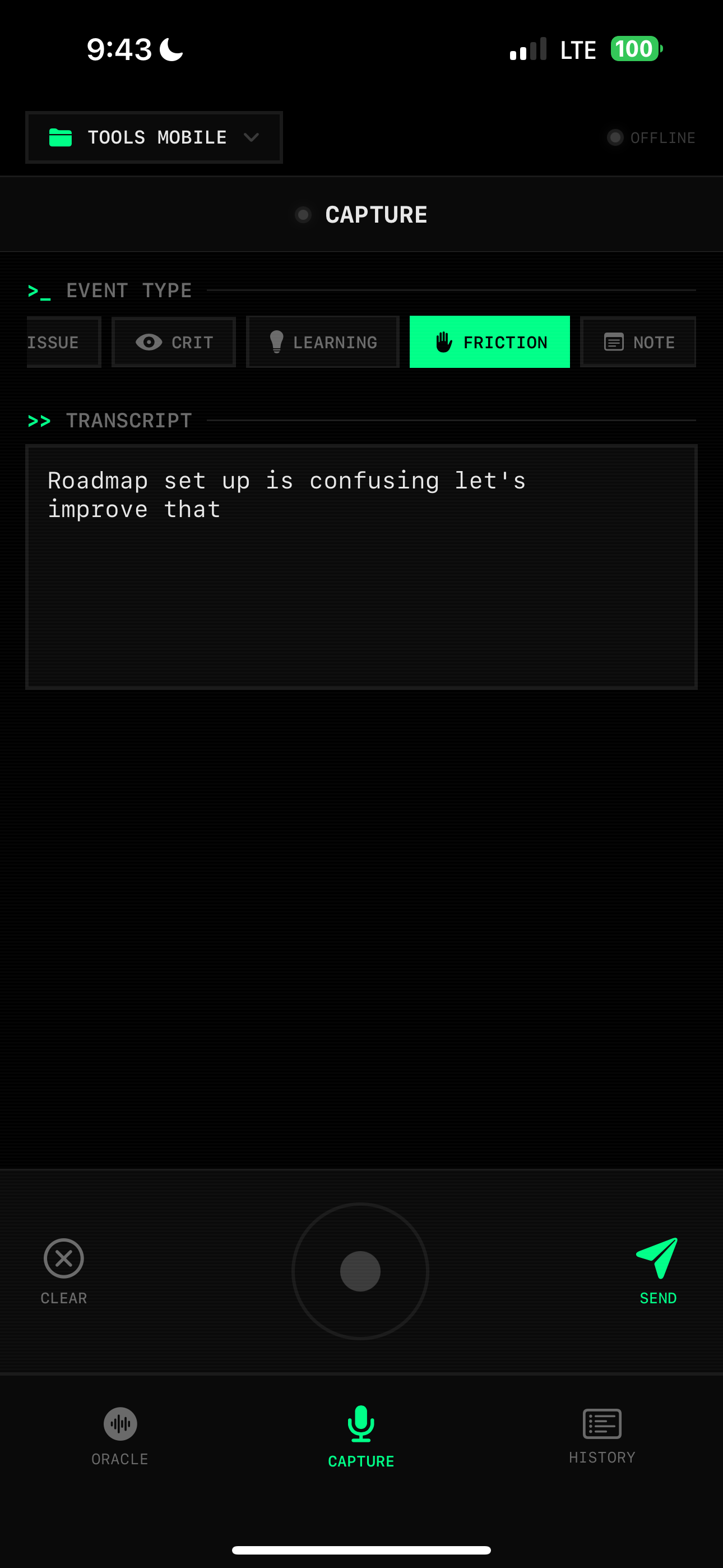 - Mobile app with voice capture → tool routing